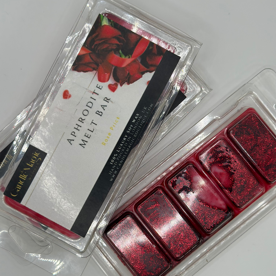 Indulge in the luxurious feminine fragrance of our Aphrodite Melt Bar, designed to bring out a happy and divine mood within you. Step into your feminine essence and unwind with a glass of wine and some well-deserved chocolates. The Palo Santo & Rose scent combines cleansing palo santo with fresh garden roses, ripe oranges, and lemon zest, filling your home with a burst of delightful freshness. Elevate your space with the enchanting aroma of Aphrodite Melt Bar and embrace the divine within.